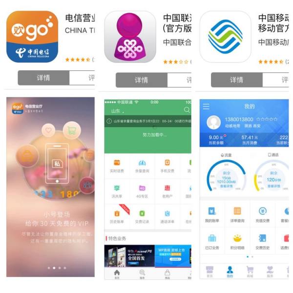 3. 三大運(yùn)營(yíng)商(電信、移動(dòng)、聯(lián)通)自己開(kāi)發(fā)的應(yīng)用。黨組書(shū)記對(duì) UI 設(shè)計(jì)亦有貢獻(xiàn)。